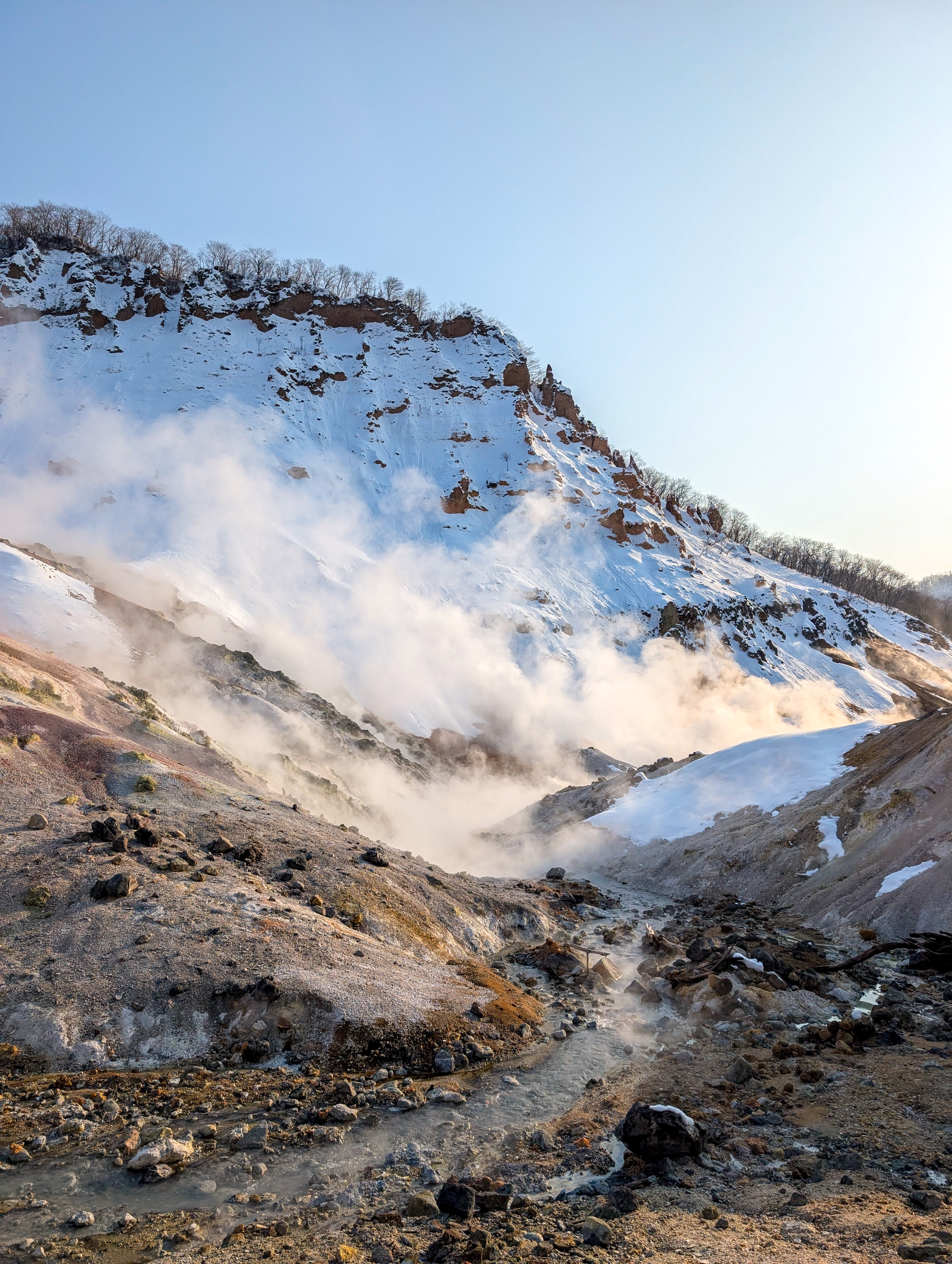 Our second side quest was a drive out to Noboribetsu. On our way, we got our first peek of Yotei and the calm waters of Lake Toya. In Noboribetsu we walked the boardwalks around the hot springs before retiring to the grand onsen in town.